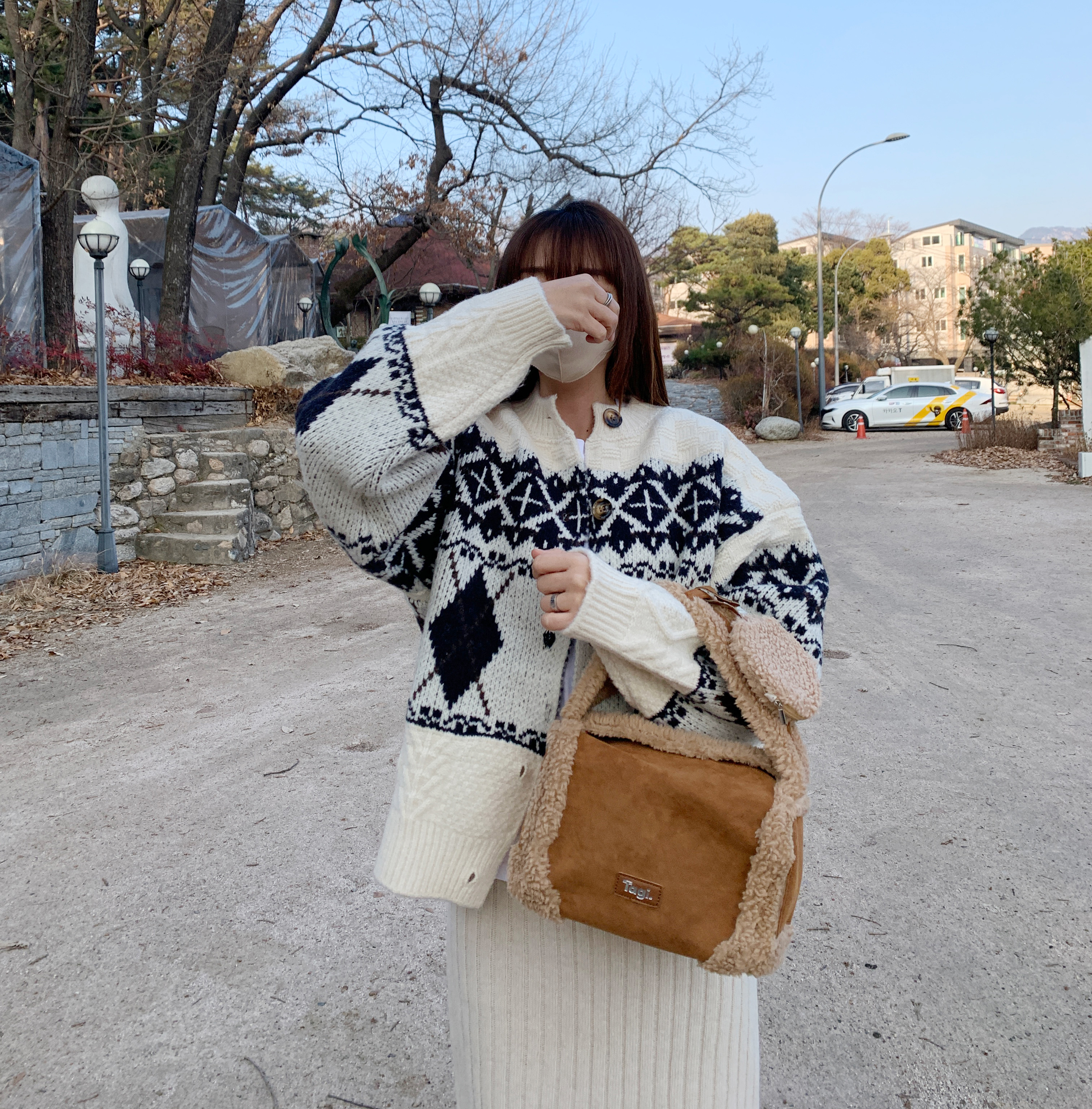 따스한 컬러감과 패턴으로 이 겨울, 그리고 크리스마스가 생각나는 가디건이에요