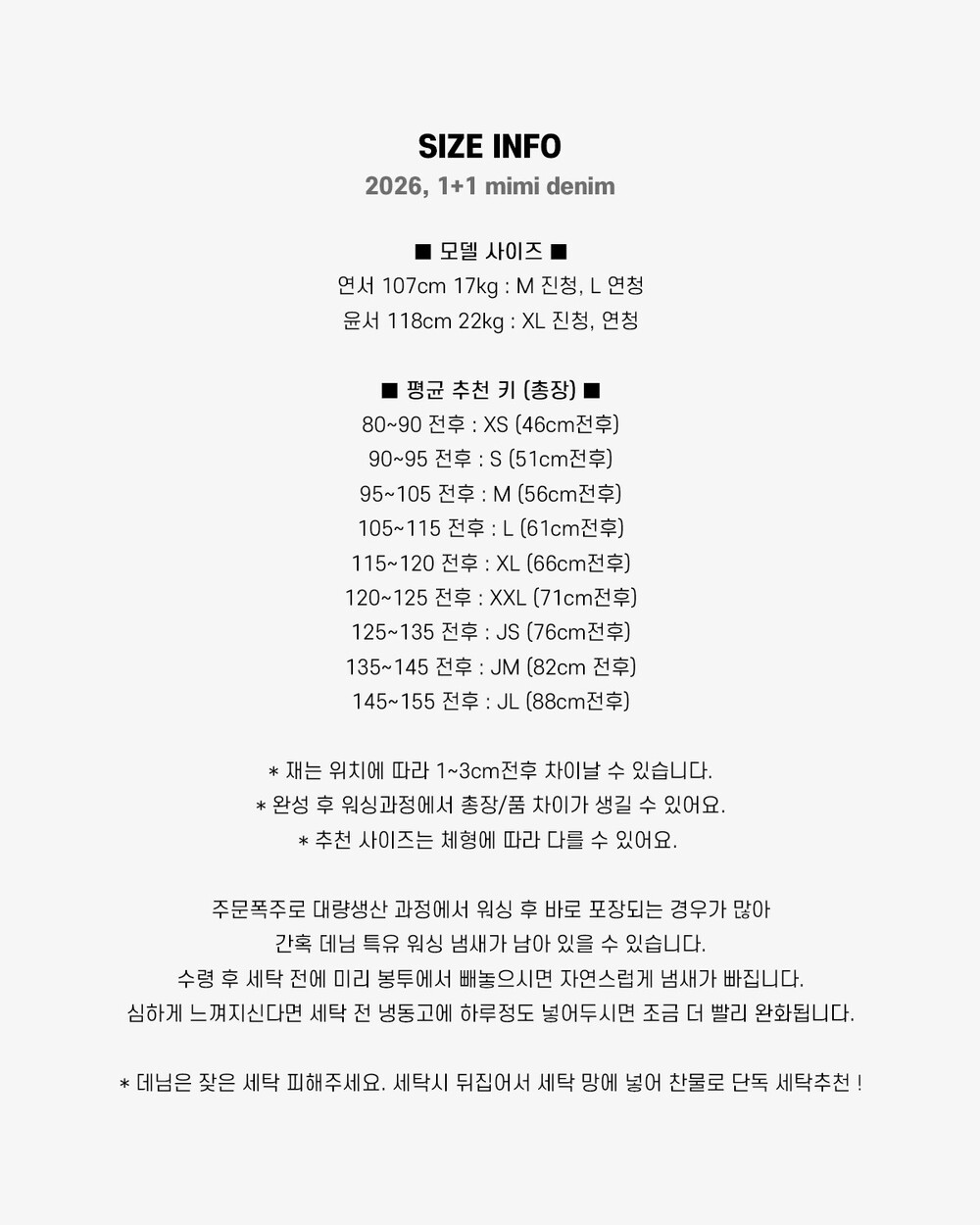 * 데님은 워싱 과정에서 같은 사이즈라도 길이감, 색상 차이가 생길 수 있어요.