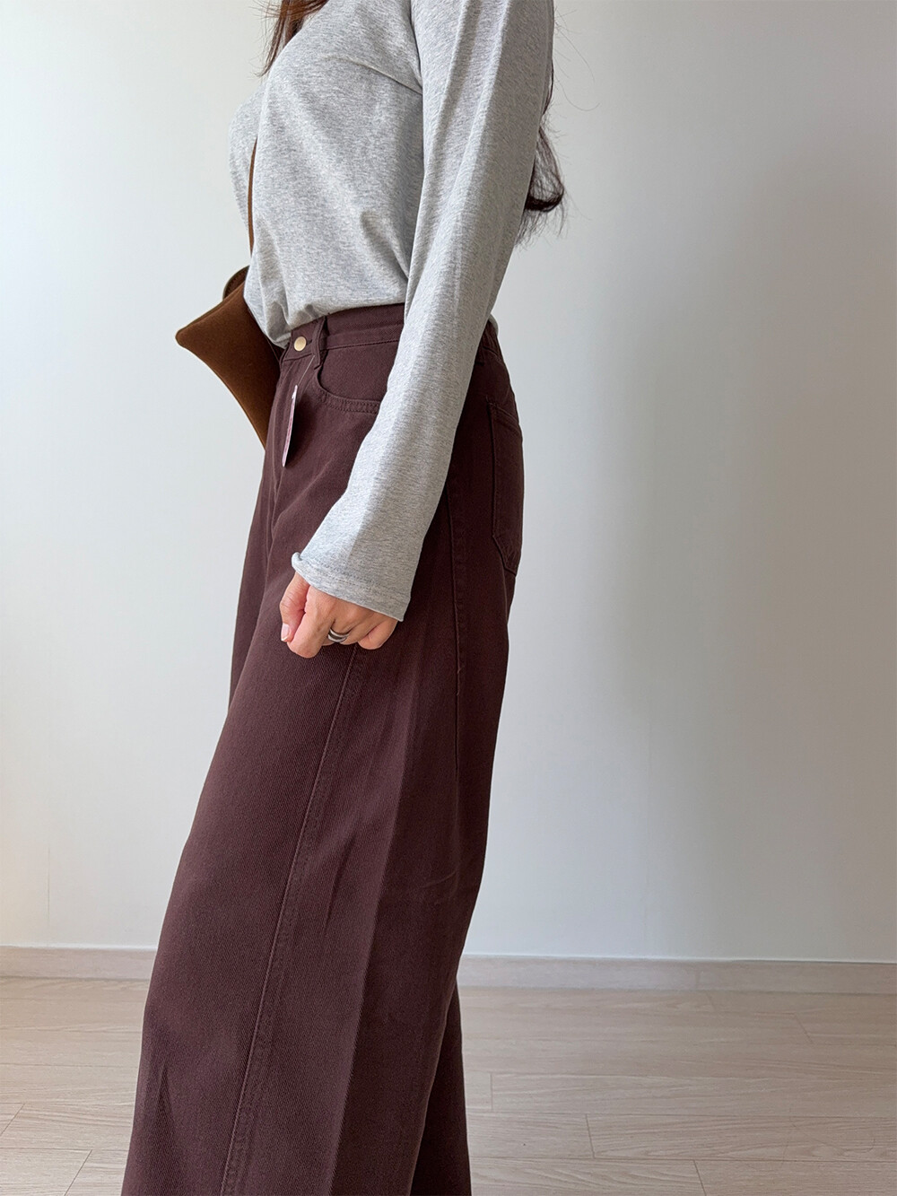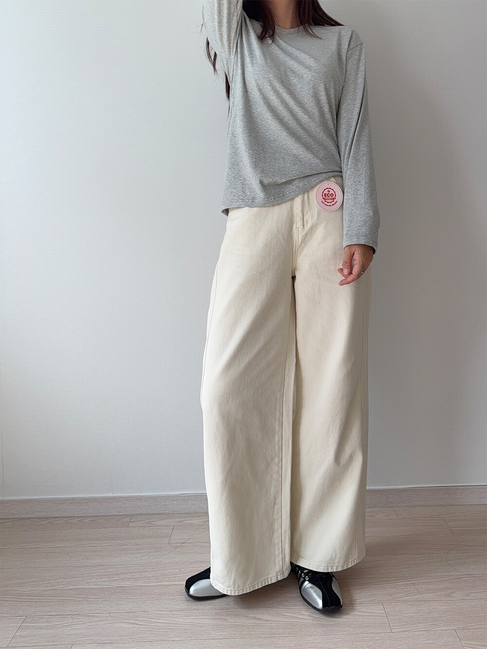 군더더기 없이 깔끔하게 떨어지는 핏으로, 입는 순간 편안함을 느낄 수 있는 와이드 팬츠예요.