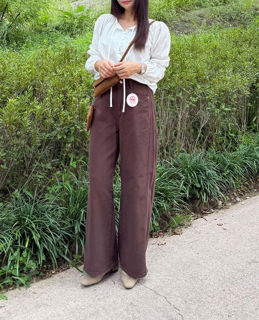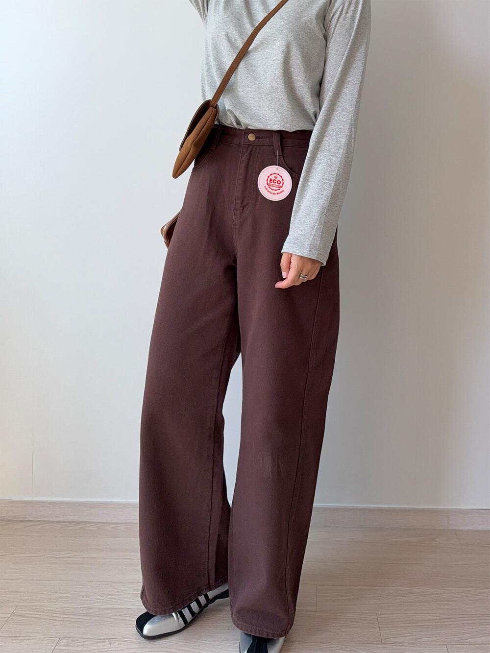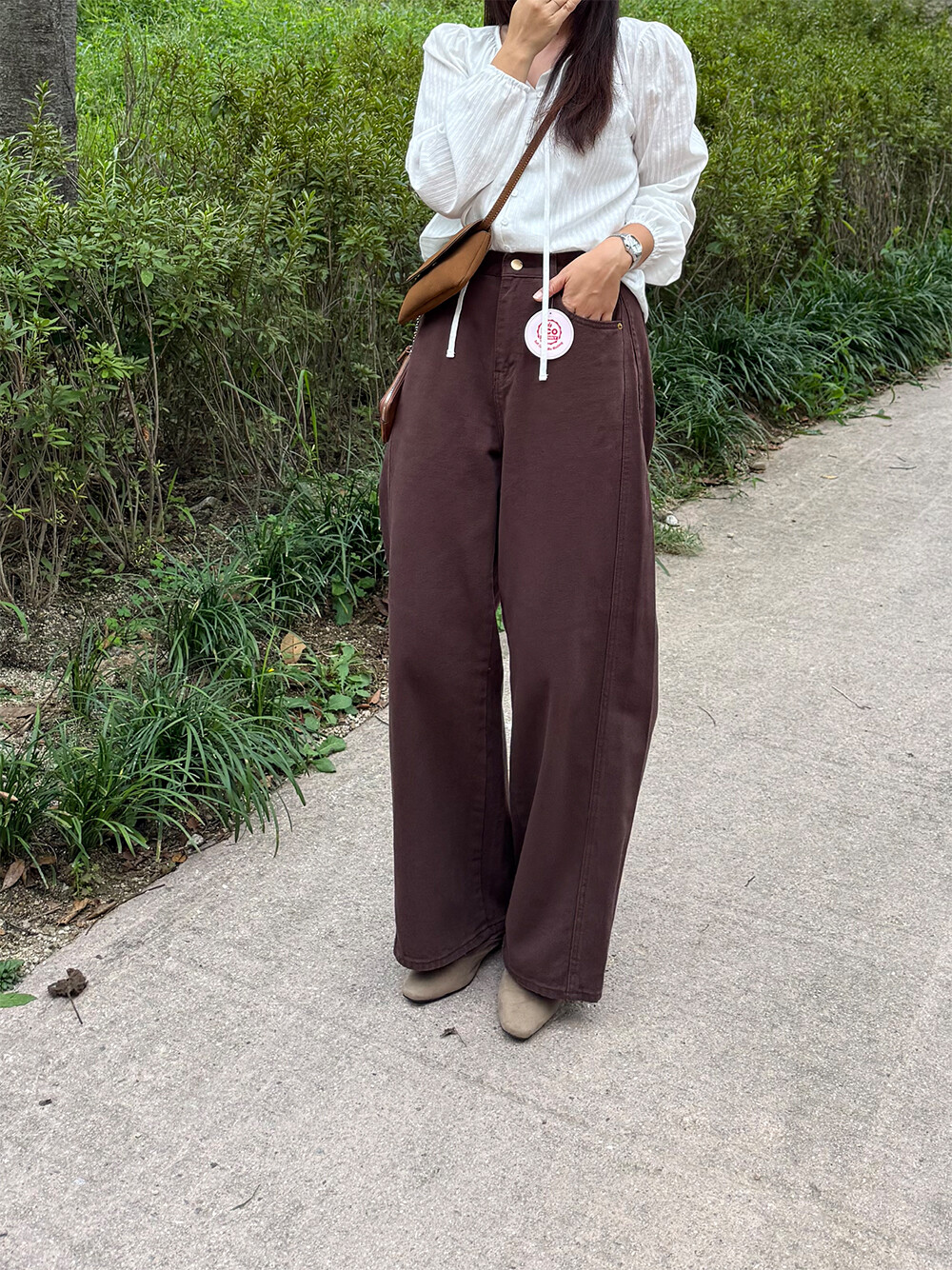 세미 와이드 핏으로 단순한 면바지와 차별화되는 세련된 실루엣 제공합니다.