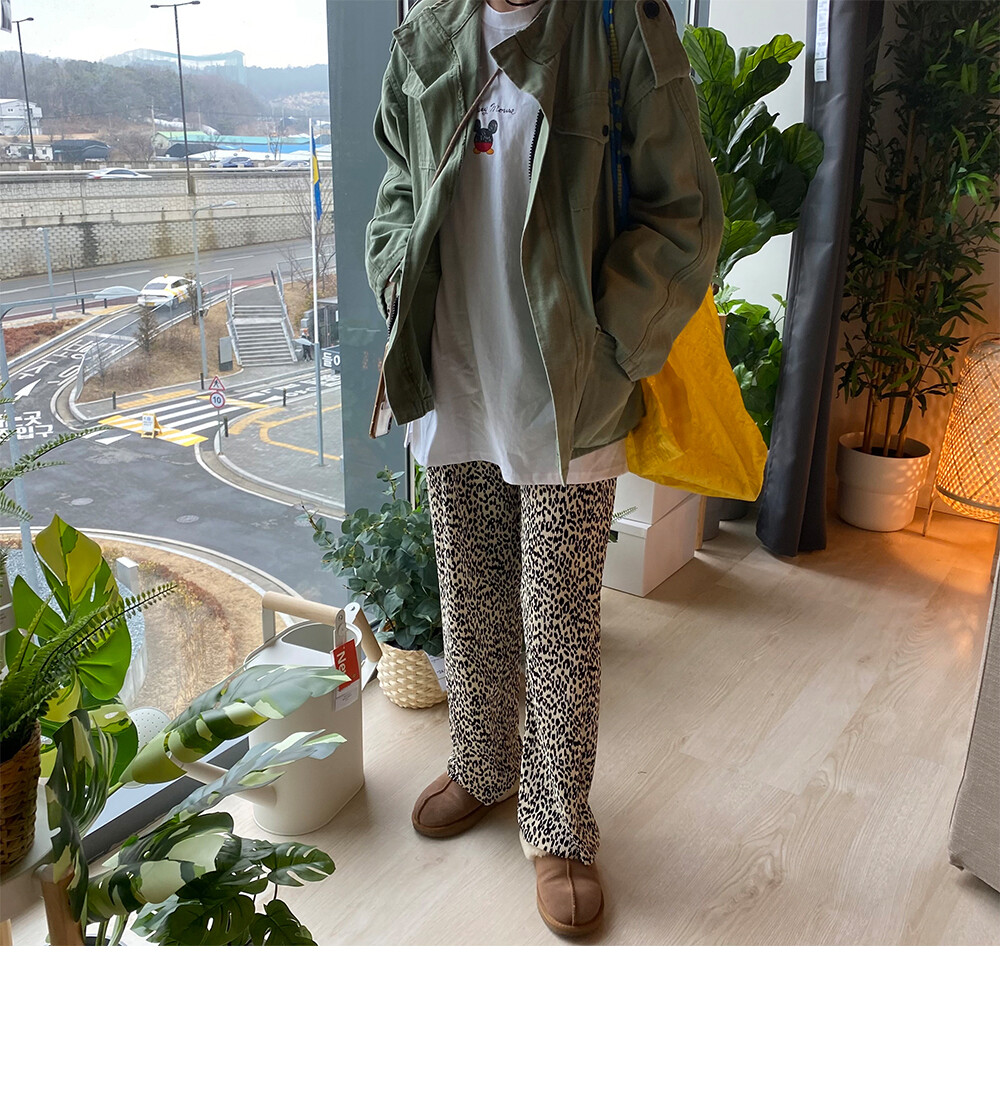 허리 밴딩, 플리츠 주름이 에쁜 호피패턴의 팬츠입니다.