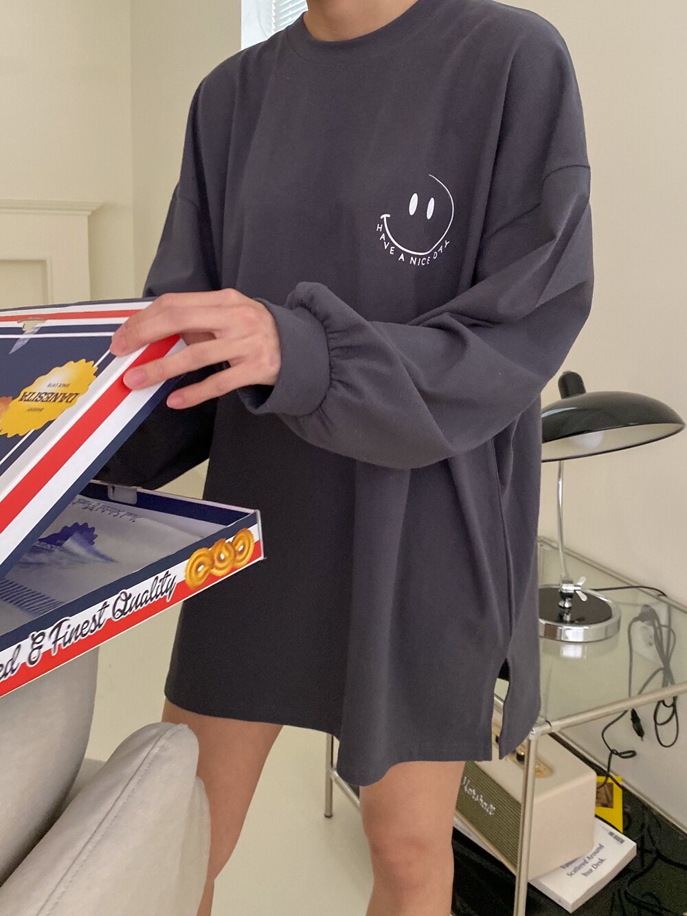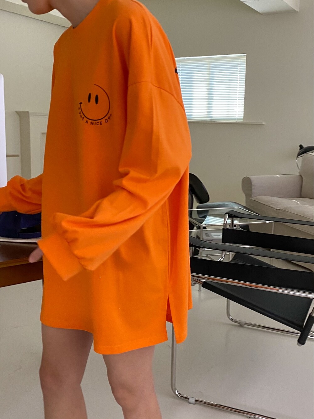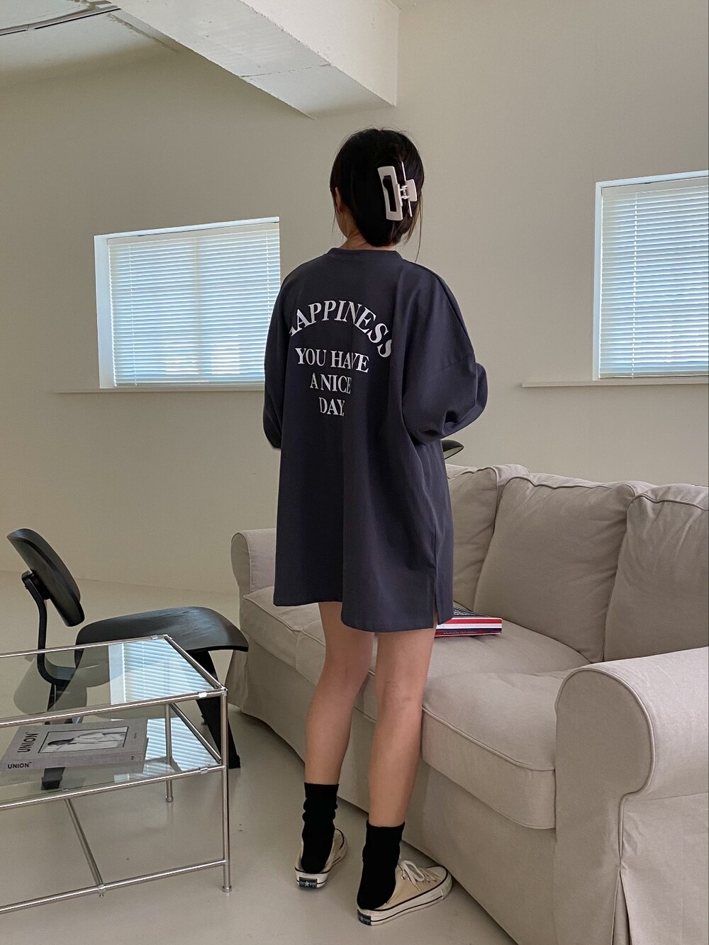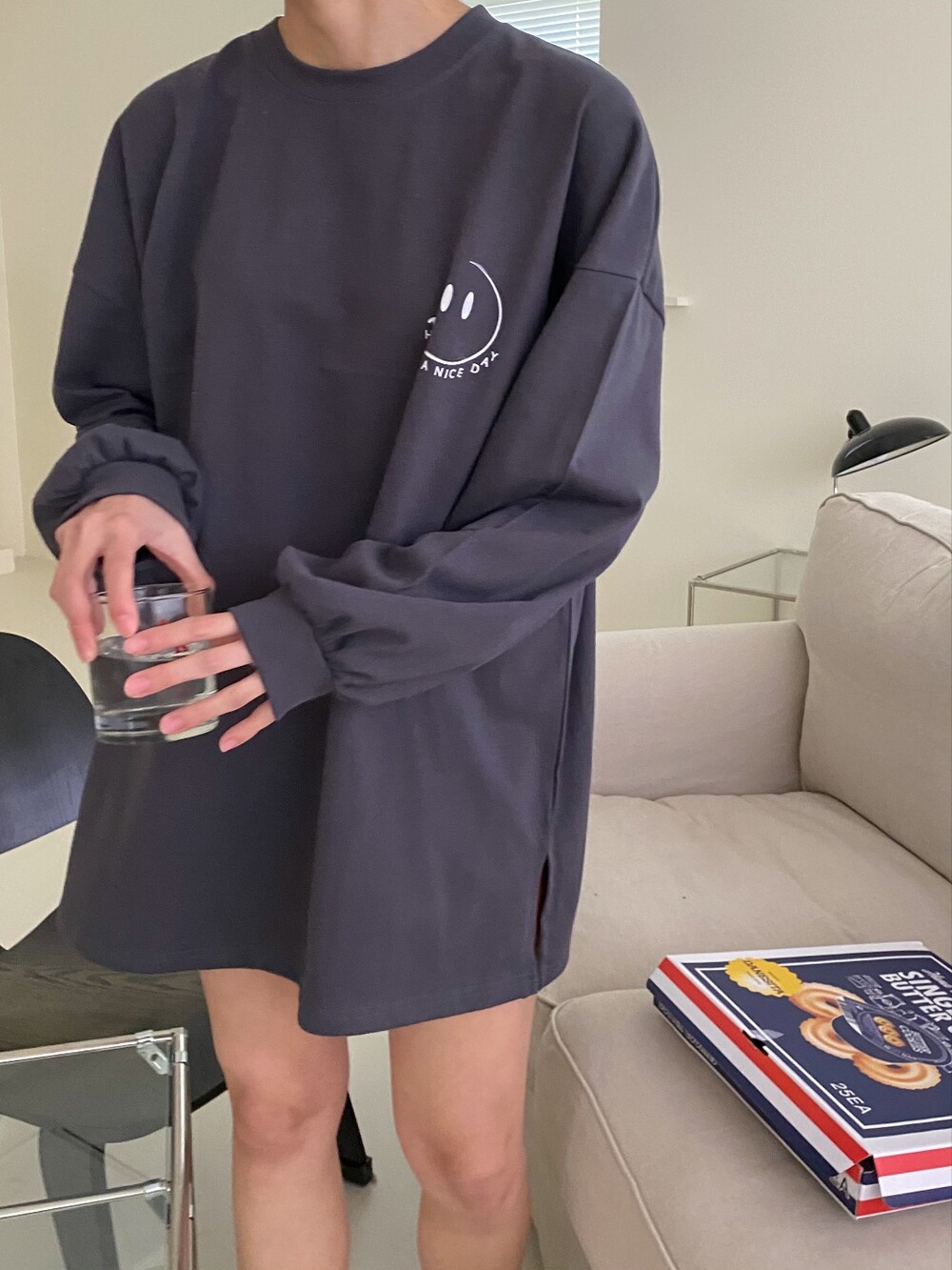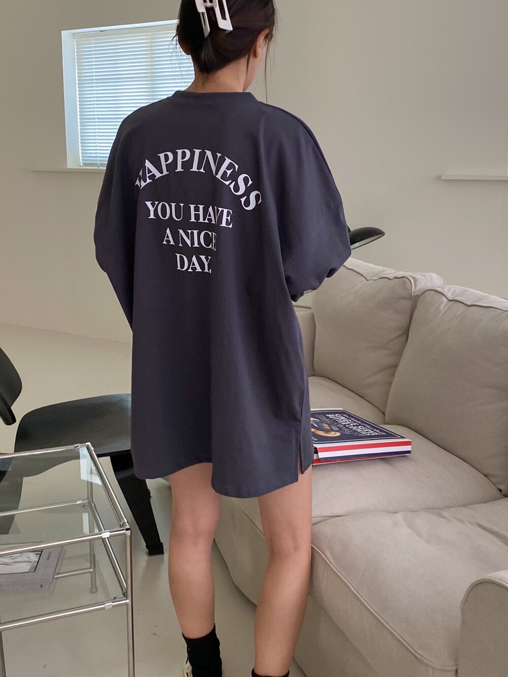 POINT 톡톡한 소재로 가볍고 비침없는 티셔츠 입니다. 여유있는 사이즈로 전체 사이즈 구애 없이 입으실 수 있어요. 엉덩이를 덮는 길이감입니다.