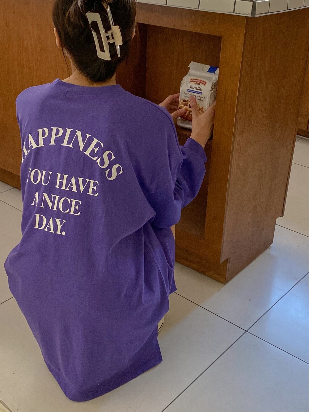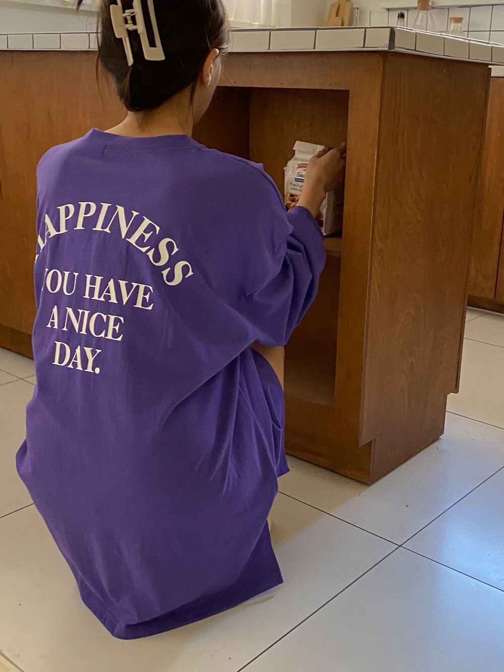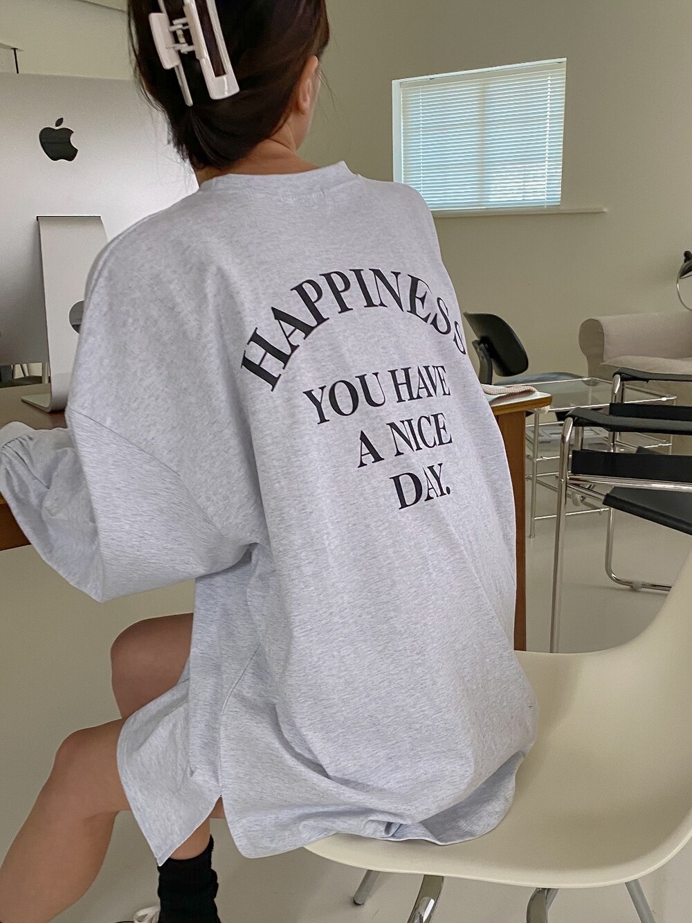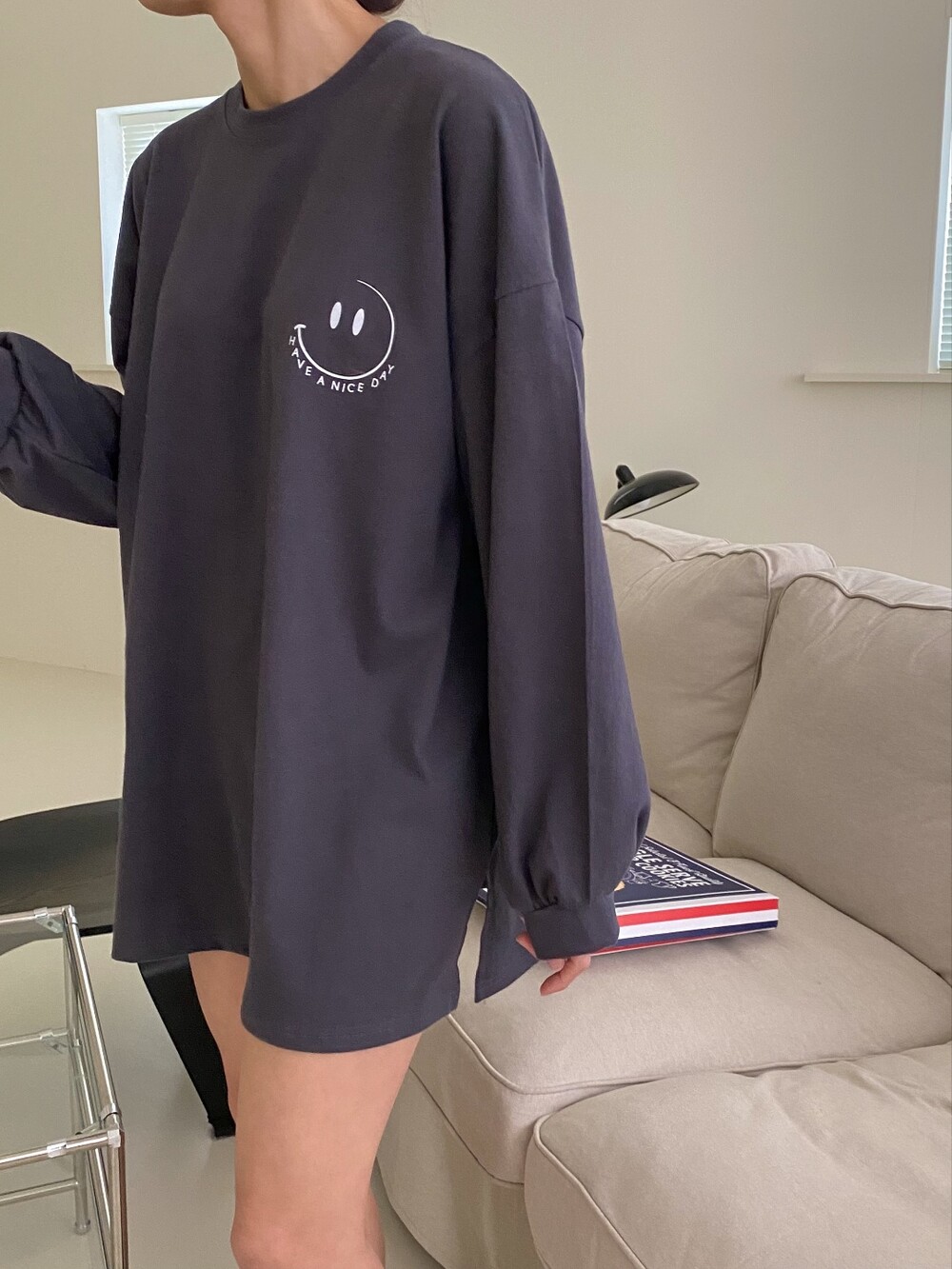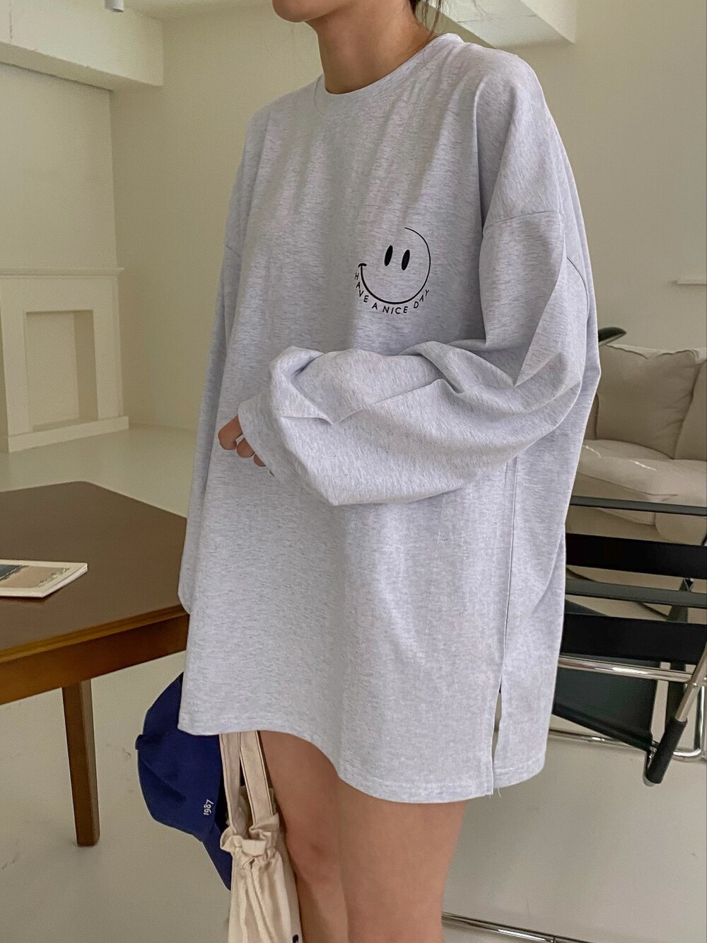 POINT 톡톡한 소재로 가볍고 비침없는 티셔츠 입니다. 여유있는 사이즈로 전체 사이즈 구애 없이 입으실 수 있어요. 엉덩이를 덮는 길이감입니다.