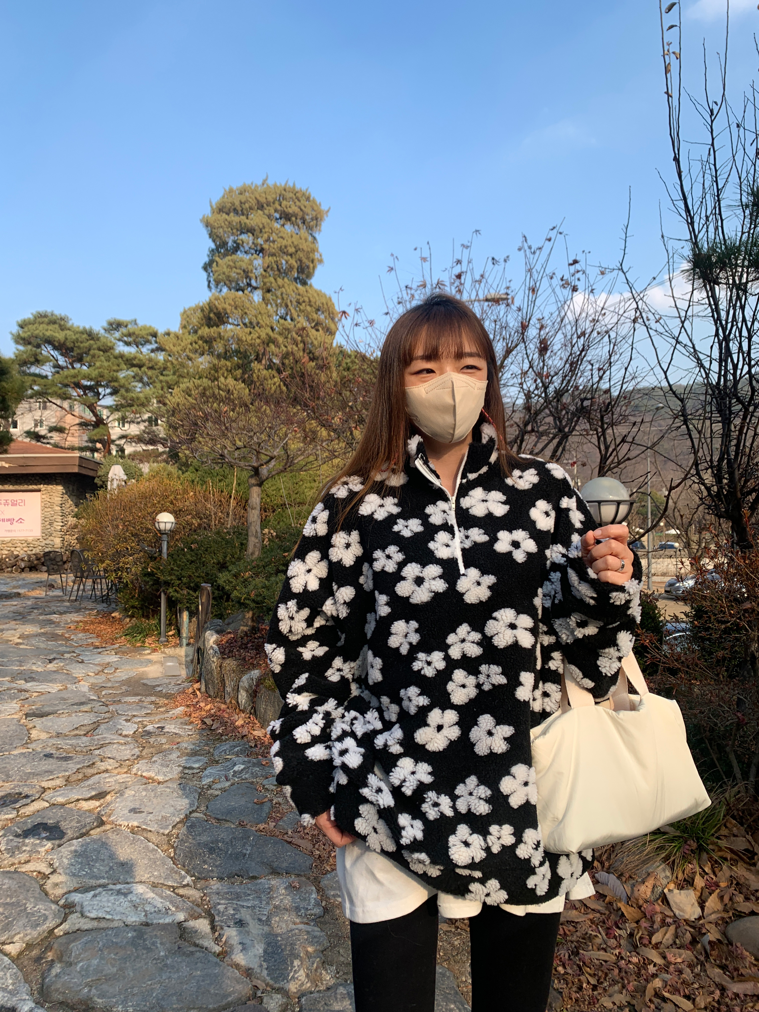 화사한 패턴이 캐주얼함은 물론 러블리함까지 함께해서 더 어려보이는? 그런 느낌이랍니다. 힙을 덮는 길이감으로 팬츠는 물론 레깅스에 함께 입으셔도 편안하게 입으실 수 있어요. 하이넥디자인으로 집업을 쭉 올려 입으면 목도 따뜻하고 실내에선 내려서 입으면 또 센스있어 보여요.