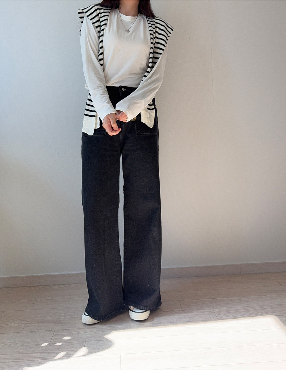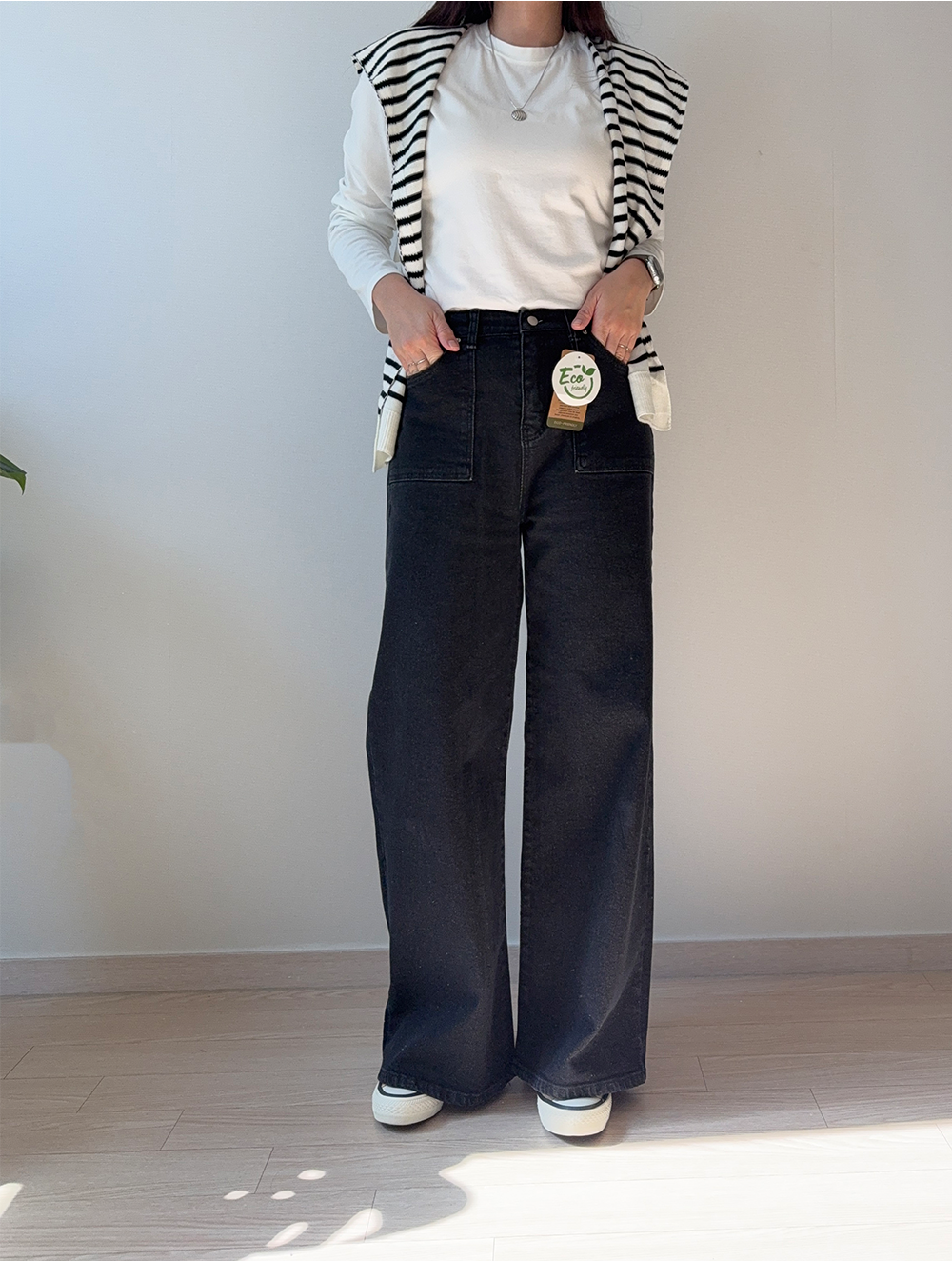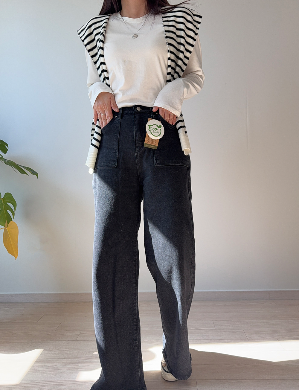 요즘 가장 손이 많이 가는여유있는 와이드 핏 데님이에요.