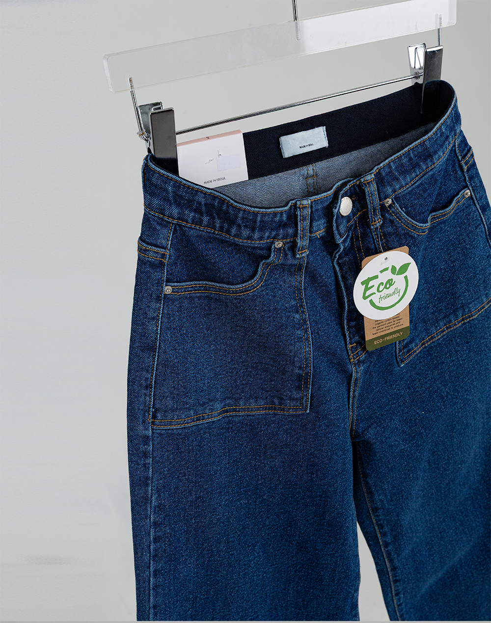 (거의 없지만 간혹 염색 냄새 같은게 날 수도 있습니다. 이는 모든 데님에서 날 수 도 있는 부분으로 외부에 널어두시거나, 냉장고에 넣어놓는듯 인터넷에도 바지 냄새 빼는 방법들이 여러가지 찾으실 수 있어요)